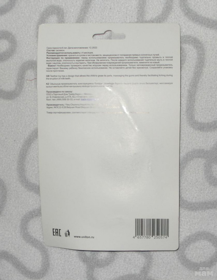 Прорезыватель поможет малышу в период прорезывания первых зубов.