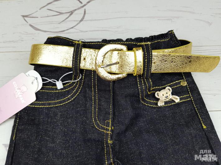 10. Джинсы "Colabear" с золотым ремнем. Молнии на брючинах, в поясе утяжки нет (ремень). Джинсовый материал с золотым люрексом. Размер - маркировка 98 см, но сильно большемерят, на 104-106 см минимум. Цена 800 руб.