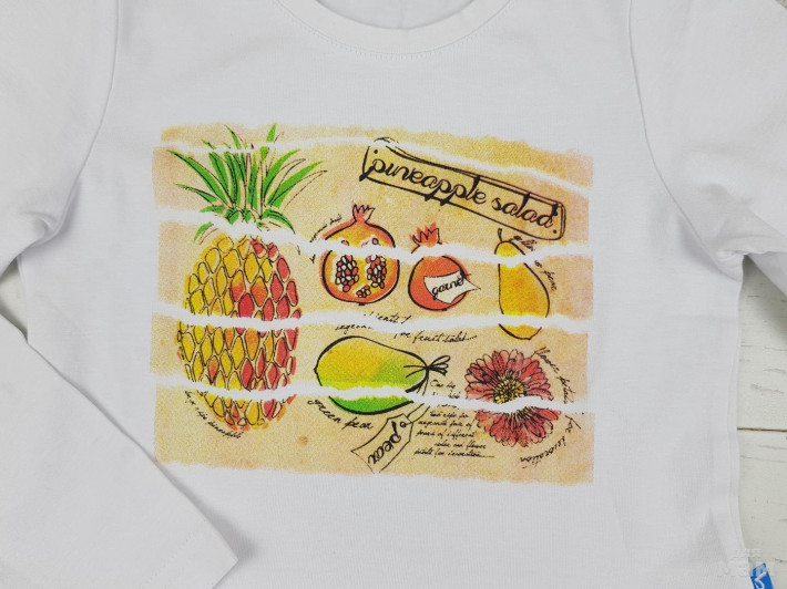 6. Футболка «Flags» с длинным рукавом. Рукава комбинированные, разноцветные стразы на рисунке. Цена 450 руб.