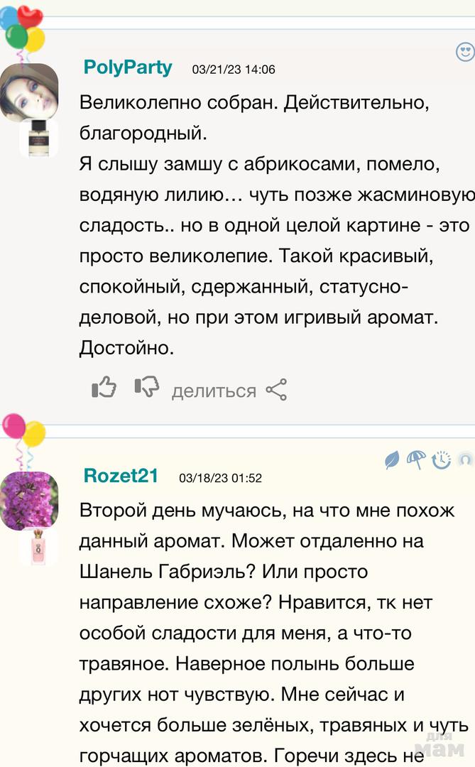 Композиция богата своим составом и относится к семействам цветочных и фруктовых ароматов.