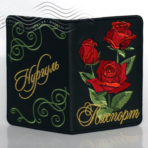 Роскошная вышитая обложка для паспорта с алыми розами и именем хозяйки документа. Готовое решение для подарка учителю, врачу, тренеру, коллеге.