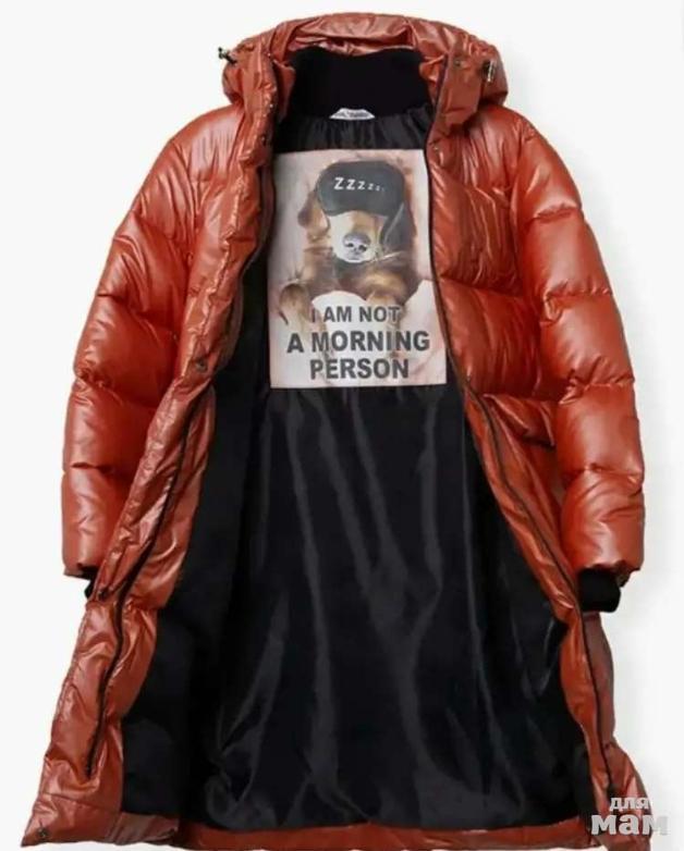 Оригинальная удлиненная зимняя куртка, цвет приглушенно красный с серебристым напылением.Модель оверсайз.Очень красиво садится.Внутри на полкладке прикольный принт.Температуреый режим до -30°.