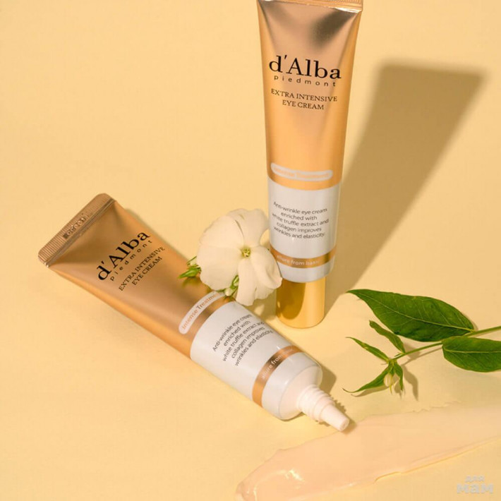 Укрепляющий пептидный крем для век d'Alba Extra Intensive Eye Cream нежно тает на коже, глубоко питая, увлажняя и смягчая, повышает эластичность и упругость, поддерживает гладкость и замедляет процесс старения.
