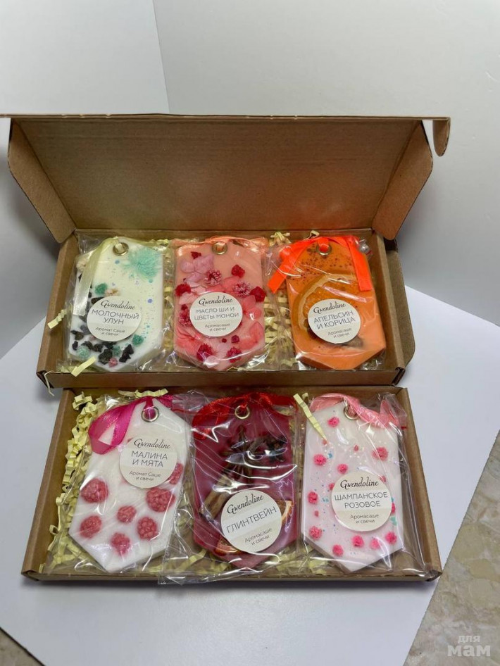 Аромасаше шкафа изготавливается в ручную из 100% натуральных компонентов (соевый воск и сухоцвет), что делает его безопасным, для детей и домашних животных, а так же позволяет ему сохранять приятный аромат на длительный срок до 3-х месяцев.