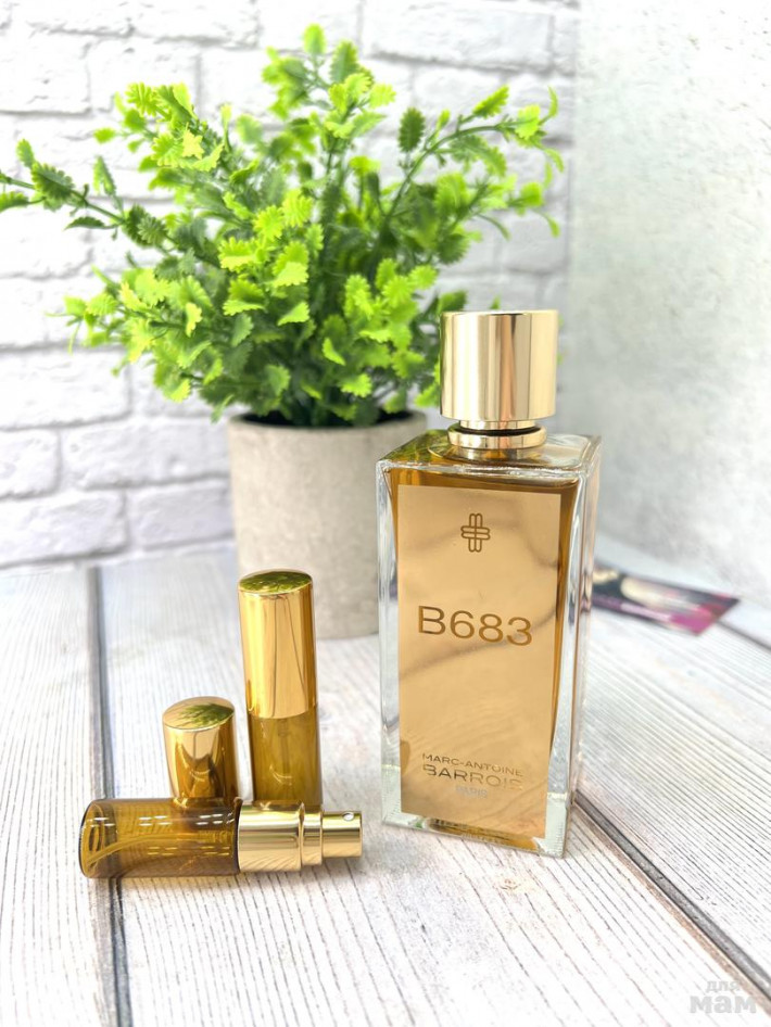 B683 - результат встречи двух молодых дизайнеров. Один - кутюрье, другой – парфюмер. Обонятельные воспоминания из детства объединили их: аромат кожи от изящного дипломата, промокательной бумаги, запахи древесины, собираемой для обогрева отчего дома. Артистические навыки первого и обонятельный талант последнего вместе создали волшебный и приятный аромат с нотами специй, кожи и древесины.