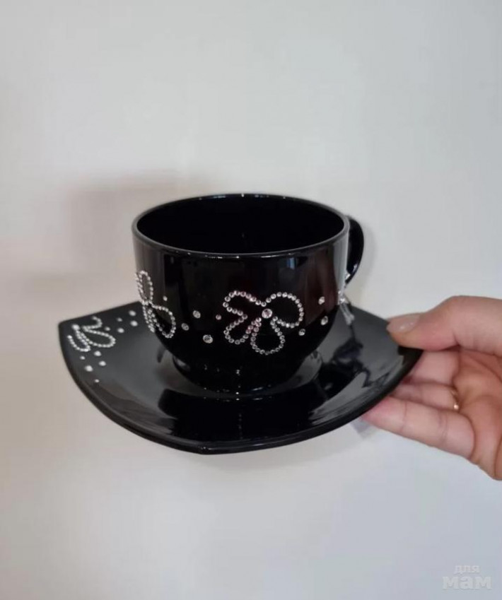 1. Чайная пара (чашка+блюдце в подарочной коробке) Bon Vie со стразами swarovski - 1300 р.