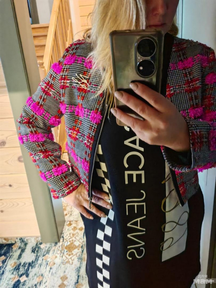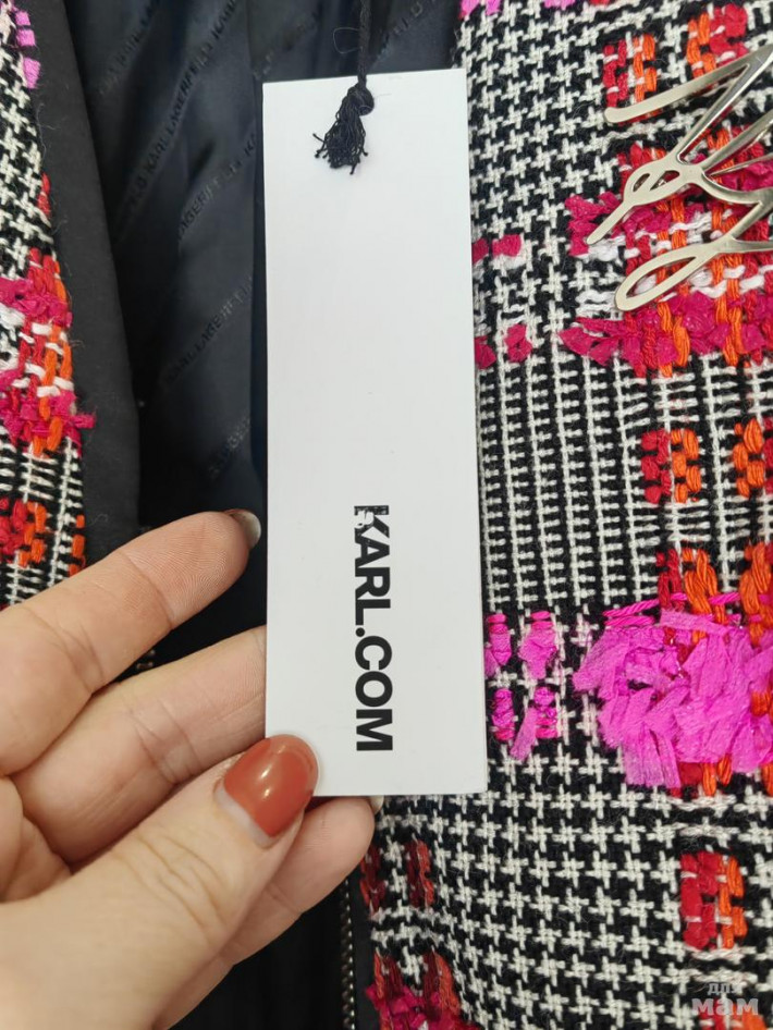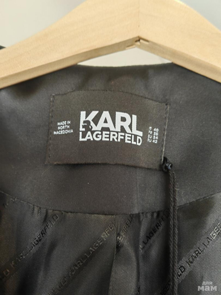 Новый жакет Карл. Можно использовать как жакет и носить самостоятельно. Немного тянется, застежка на замок, эстетичный вырез треугольником. Коллекция 23 года. Длина 49, ог 43, рукав 55 и 42.
