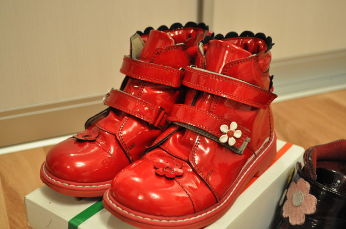 ботиночки красные Woopy Orthopedic -нат. кожа(лак) , супинатор, б/у, есть трещинки на сгибе, в глаза не бросается р29-1500руб