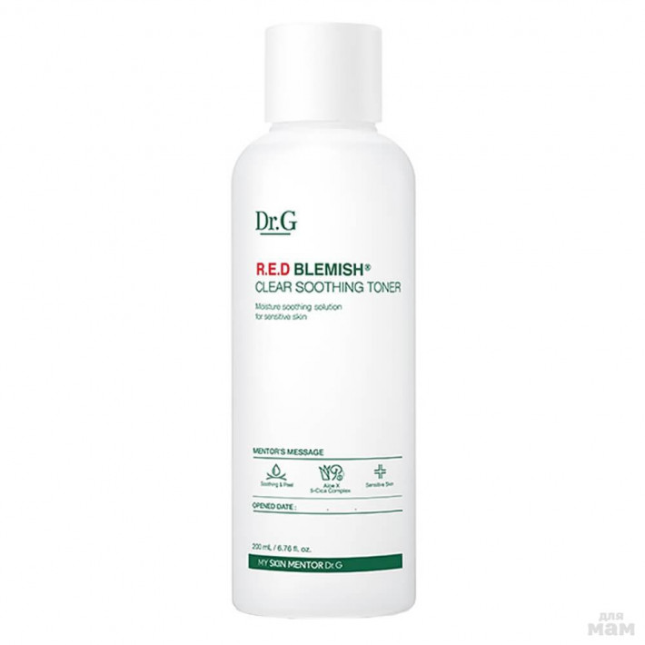Бесспиртовой тоник для проблемной кожи с 5 видами центеллы Dr.G R.E.D Blemish Clear Soothing Toner успокаивает раздражённую и повреждённую кожу, готовит к дальнейшим этапам увлажнения. Оказывает мягкий пилинг-эффект, бережно очищает от омертвевших частичек, стимулирует обновление и регенерацию, улучшает кровообращение и обменные процессы.