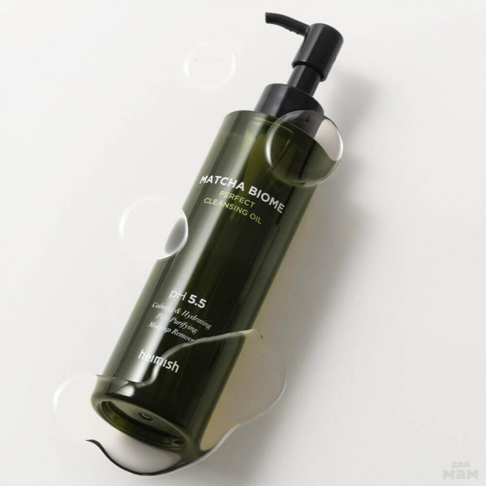 Слабокислотное гидрофильное масло с матчей Heimish Matcha Biome Perfect Cleansing Oil проникает глубокого в поры и растворяет комедоны, эффективно удаляет даже стойкий макияж. Очищает от всех видов загрязнений, тонального и солнцезащитного средства, абсорбирует излишки кожного сала и нормализует жирность кожи.