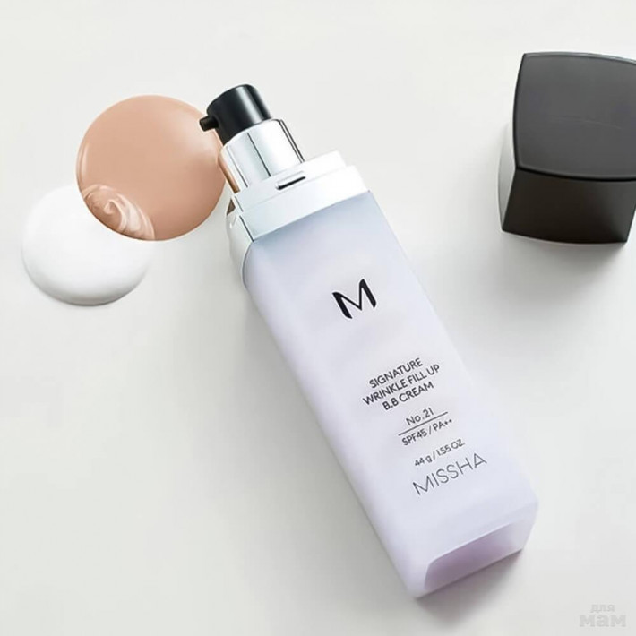 ББ-крем с филлером для зрелой кожи Missha Signature Wrinkle Fill-Up BB Cream SPF45 PA++ эффективно скрывает несовершенства, выравнивает рельеф и заполняет морщины, создавая безупречное покрытие и придавая лицу здоровое сияние.