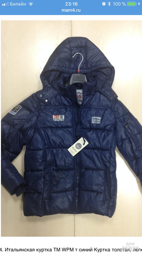 4. Итальянская куртка ТМ WPM т синий Куртка толстая, легкая.Зима. Размеры в наличии S (130) M L XL XXL(164-170)
