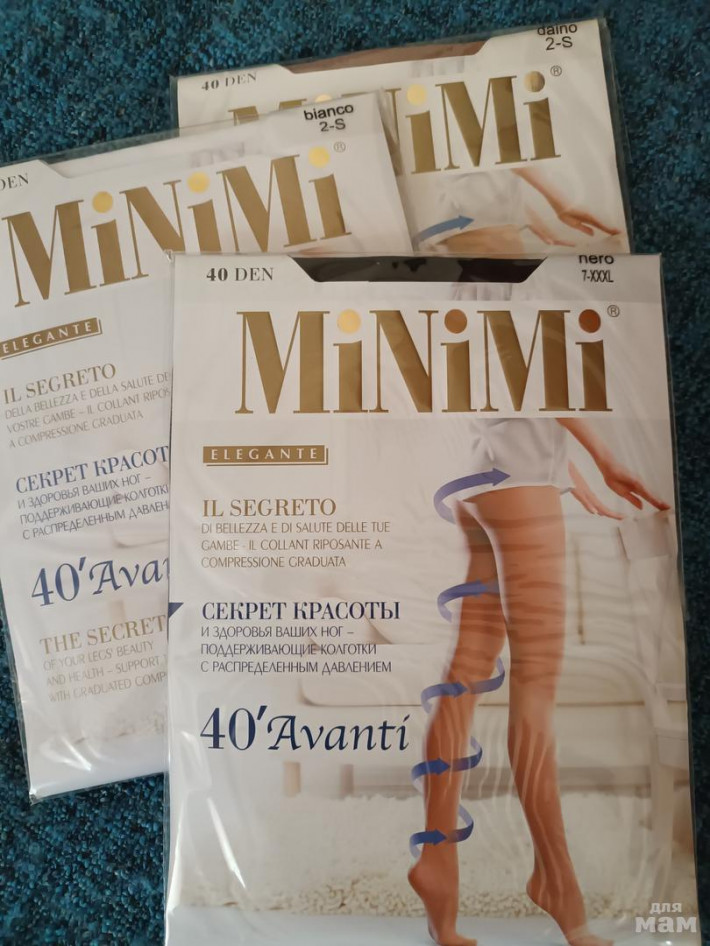 Колготки женские MINIMI AVANTI 40 den - Прозрачные колготки с распределенным давлением по ноге, с уплотненными поддерживающими шортиками, с укрепленным невидимым мыском, комфортным широким поясом, плоскими швами и х/б ластовицей. Формованная ступня. Размеры 6 и 7 с задней ставкой.