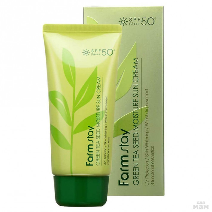 FarmStay Солнцезащитный крем с семенами зелёного чая Green tea seed moisture sun cream