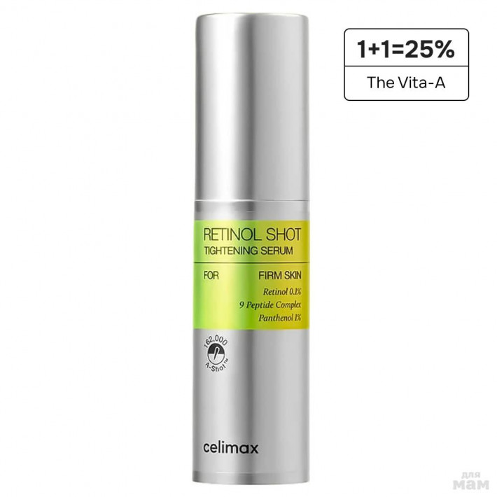 Подтягивающая сыворотка с ретинолом и микроиглами CelimaxThe Vita−A Retinol Shot Tightening Serum обеспечивает интенсивный уход для кожи с признаками старения и симптомами акне. Обладает лёгкой увлажняющей текстурой, быстро впитывается, не оставляет ощущения стянутости и липкости.