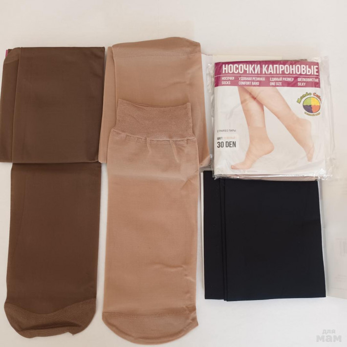Женские носки шелковистые, эластичные. Укрепленный мысок. Комфортная резинка. Стопа обычная. В упаковке 1 пара. Цена 30 р.