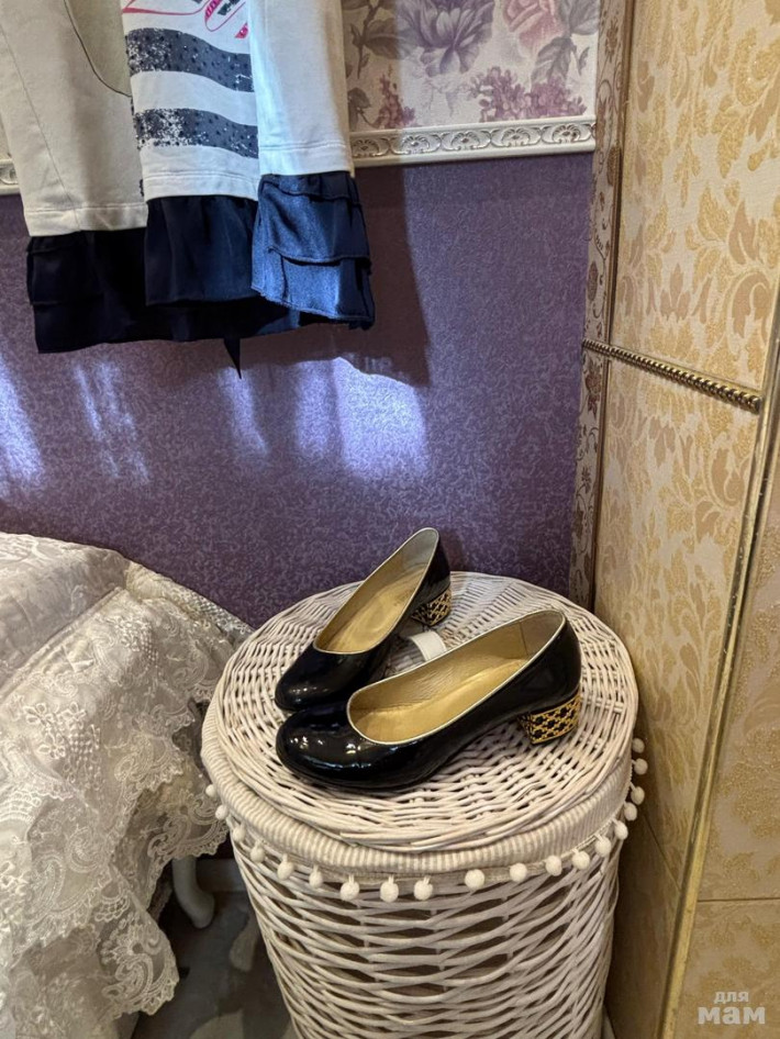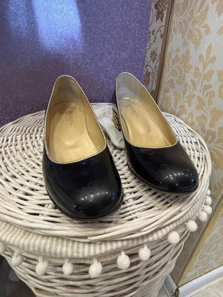 Красивучие туфельки знаменитого дорого итальянского бренда Missоuri. Цвет темно-темно-синий, почти как черный. В очень хорошем состоянии. БУ. Лаковые. Золотая отделка на каблучках. Удобные. Милые. Качественные. Их плотной лаковой практичной кожи. Кожа на коже. Подойдут хорошо на высокий подьем. На узкую и среднюю ножку. Красивые очень! Есть нюансы - внутри нога об ногу где трется - есть маленькие сколы лака и незначительные потертости. Совершенно не заметны в носке. Показала на фото. В цене отразила).