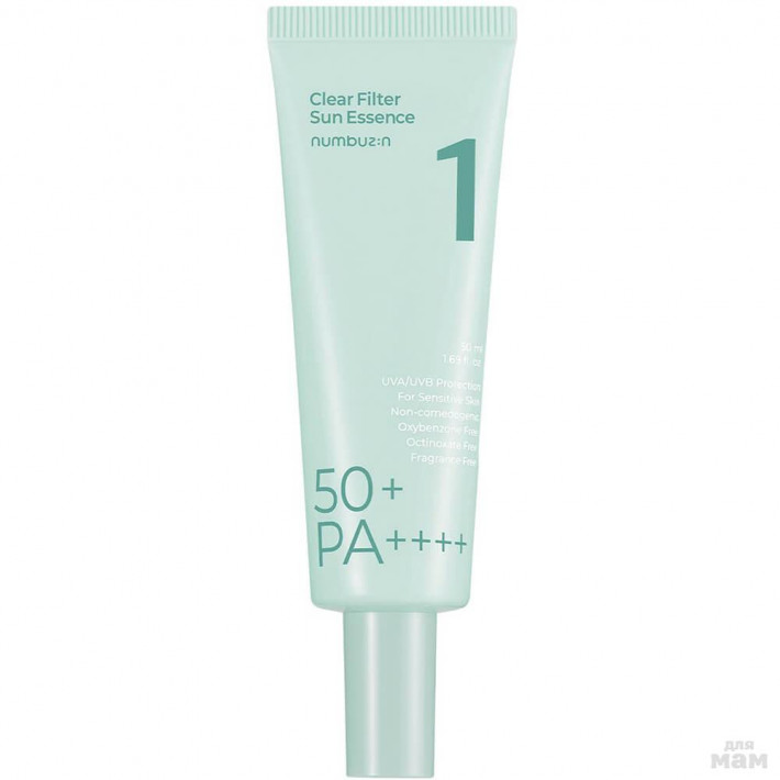 Лёгкая солнцезащитная эссенция numbuzin No.1 Clear Filter Sun Essence SPF50+ PA++++ обеспечивает защиту от ультрафиолетового UVA- и UVB-излучения, предотвращая появление солнечных ожогов, пигментных пятен и признаков фотостарения.