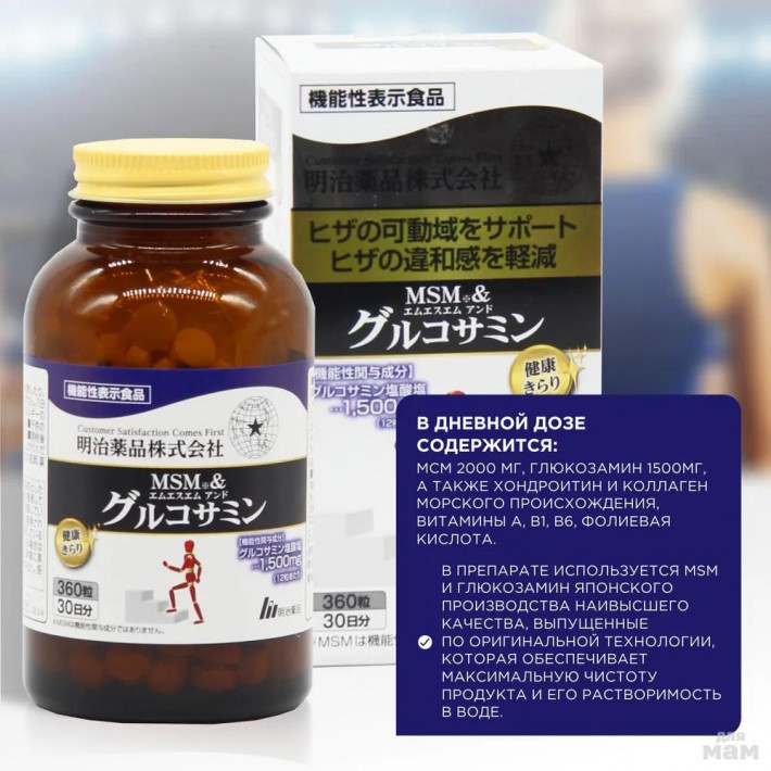 Пищевая добавка MEIJI NOGUCHI MSM глюкозамин и хондроитин суставов, хрящей и костей, 360 таблеток
