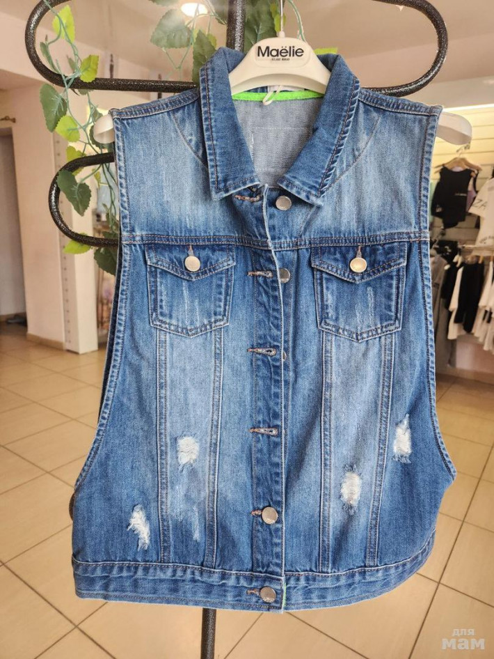 Джинсовый жилет свободного кроя от итальянского бренда Фан-Фан.Цена 700 руб