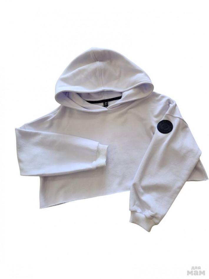 Очень оригинальное укороченное оверсайз худи от Альберелло в белоснежном цвете.