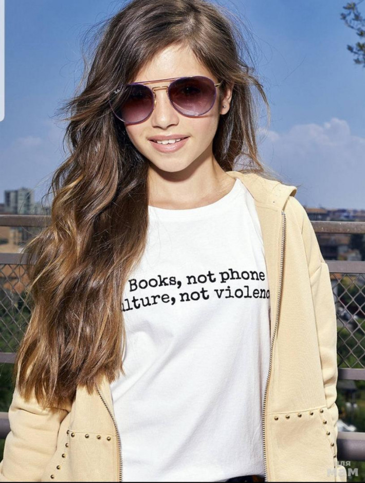 Дизайнерский топ для девочки. Укороченная модель прилегающего силуэта. Футболка с акцентным авторским принтом.Размеры в наличии 134,140,146,164 цена 800 руб