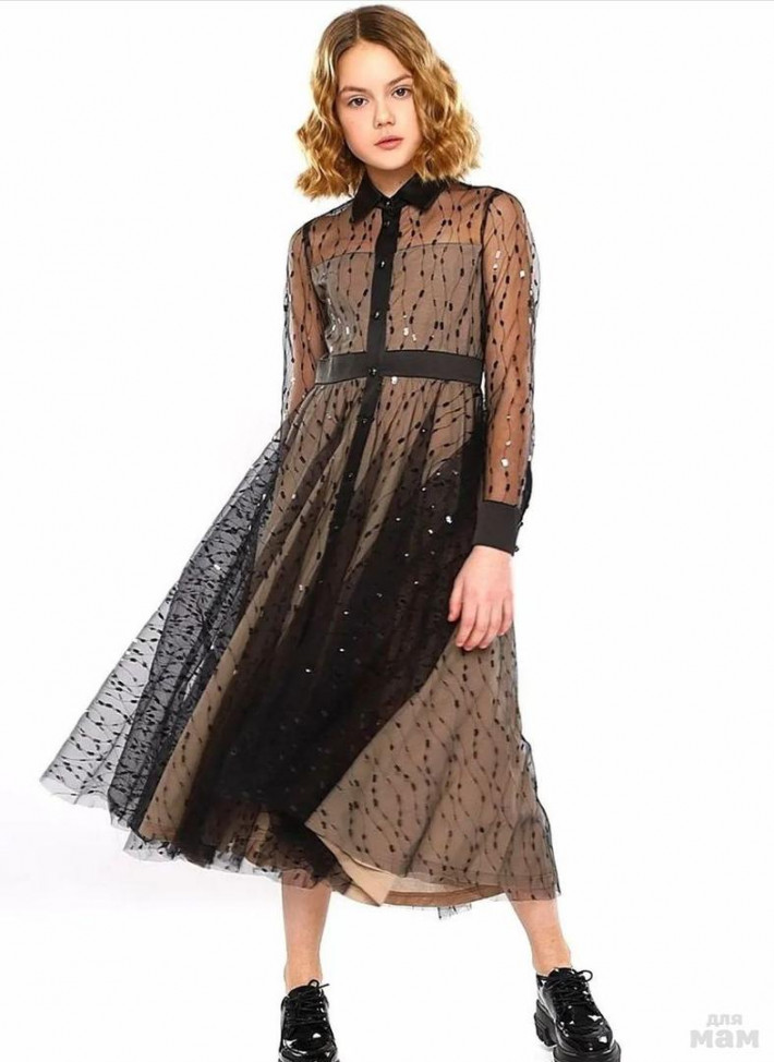 Очень красивое платье с принтом Пье-де пуль на сетке, внутри трикотаж. Садится как на стройных, так и на пухленьких девочек.