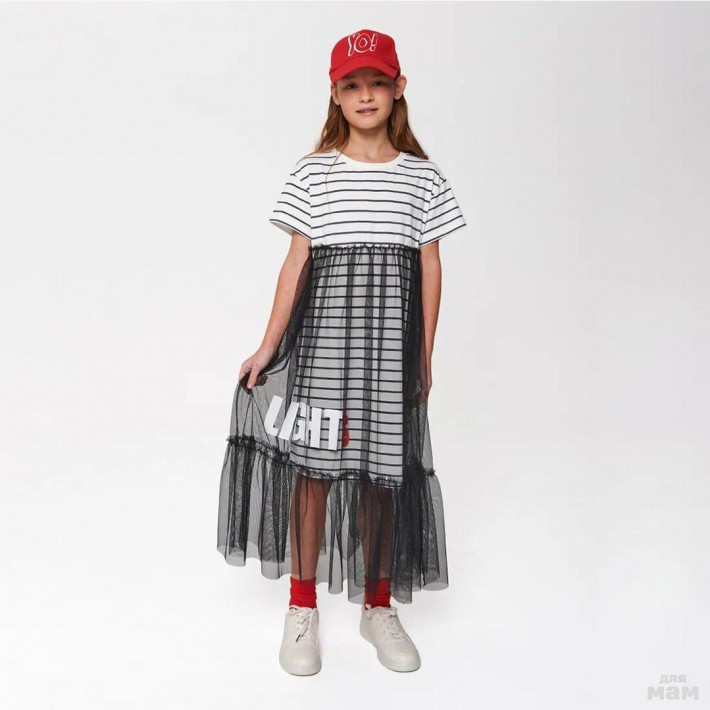 Платье для девочки А-образного силуэта с декоративным вырезом по спинке. Карманы в боковых швах. Комбинация материалов: клетчатый поплин с крэш-эффектом и однотонный хлопок, декорировано авторским принтом.Очень классная модель,супер легкое для лета отличный вариант.