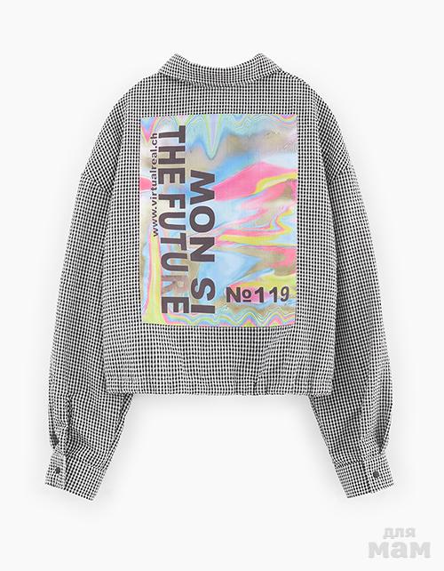 Модная кроп-рубашка в клетку для девочки. Укороченная оверсайз модель. Застёжка на кнопки. Спущенная линия плеча. Стильный принт на спинке.Размеры в наличии 158,164 цена 1350