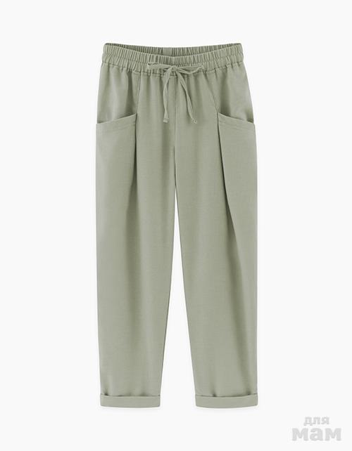 Брюки цвета хаки из хлопка, специальной обработкой под лен!Шикарные,тонкие, идеально для жары!Цена 1200