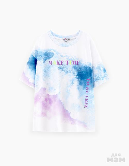 Футболка по мотивам тай-дай для девочки. Модель прямого оверсайз силуэта Размеры 134,146.Цена 800 руб