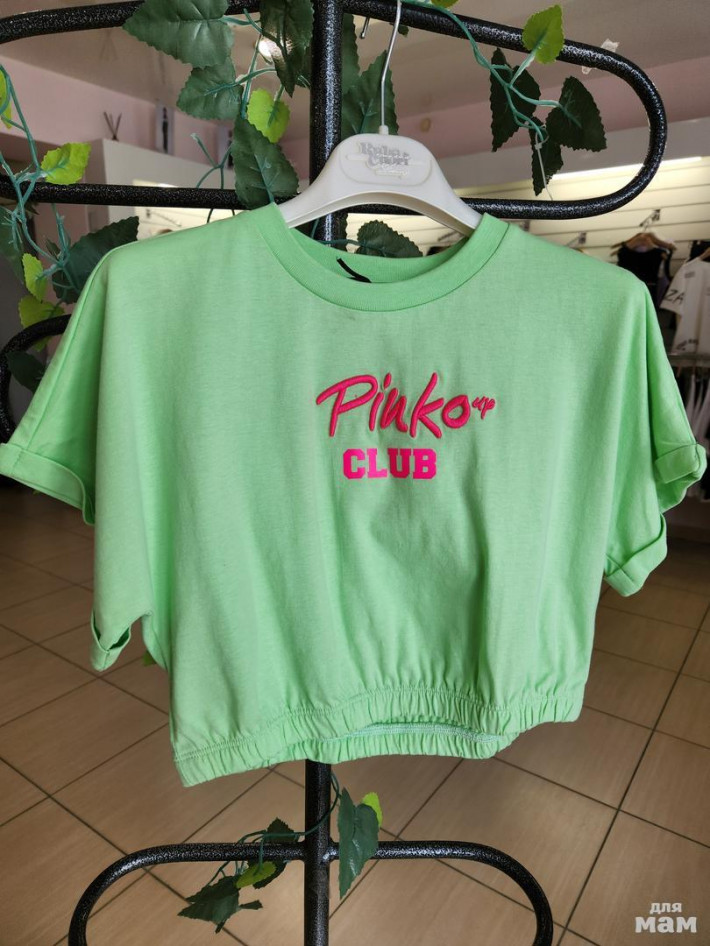 Кроп-футболка Pinko в красивом салатовом цвете с ярким брендированным принтом.Размер 140.Цена 1200 руб