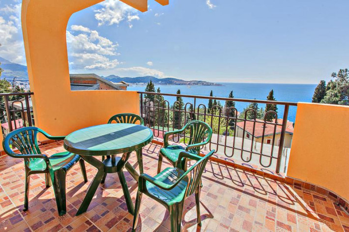 У нас трехэтажная вилла, каждый из апартаментов представляет собой отдельный этаж, с отдельным входом, собственной кухней, собственной большой террасой.