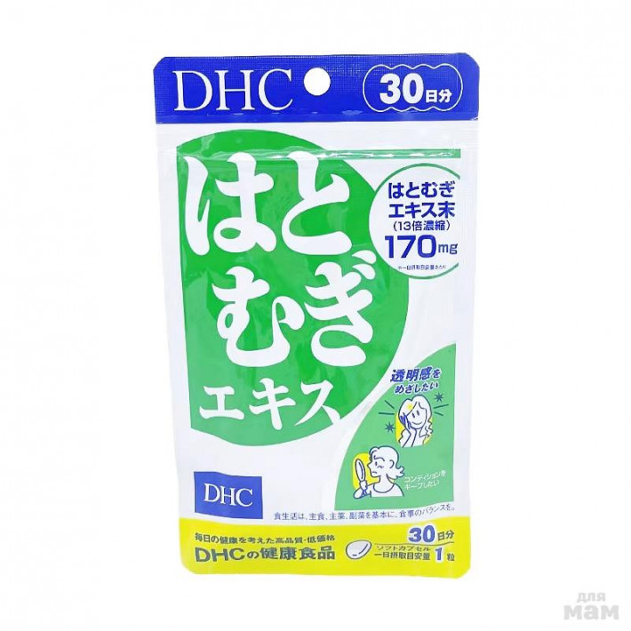 Что делает DHC Hatomugi таким эффективным?Ключ к успеху – в синергии двух ключевых компонентов:Экстракт Хатомуги (170 мг, 13-кратный концентрат): этот уникальный растительный компонент, традиционно используемый в японской медицине, обладает мощными противовоспалительными и очищающими свойствами. Он эффективно борется с бактериями, вызывающими акне, уменьшает воспаление и покраснения, сужает поры и выравнивает тон кожи. Хатомуги способствует обновлению клеток, делая кожу более гладкой и сияющей.Витамин Е (10 мг): мощный антиоксидант, защищающий кожу от повреждений свободными радикалами, замедляет процессы старения и способствует сохранению молодости и эластичности кожи. Витамин Е также улучшает кровообращение, способствуя лучшему питанию клеток и ускорению регенерации.Дополнительные преимущества DHC:Формула DHC дополнена натуральными ингредиентами, такими как оливковое масло, которые смягчают кожу и способствуют ее увлажнению. Мягкая желатиновая капсула обеспечивает комфортное и удобное применение.