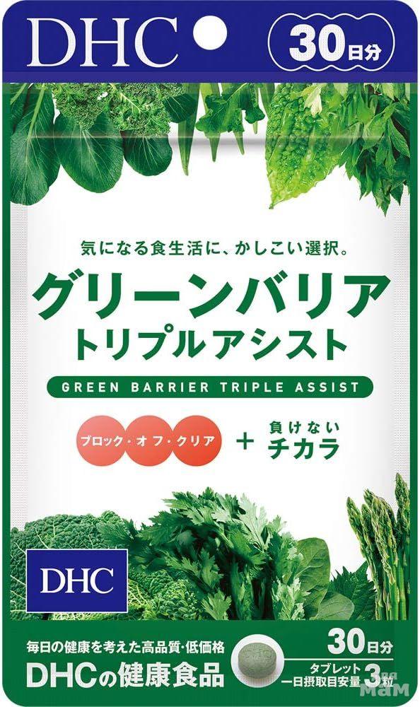 DHC Green Barrier Triple Assist Зеленый барьер, 30 дней представляет собой таблетированную добавку, которая обеспечивает тройную помощь "в блокировке и очистке" для тех, кто склонен к несбалансированному питанию с большим количеством излишков пищи и калорий. Содержит в себе тщательно отобранные ингредиенты, такие как: экстракт бибхитаки (фрукт) который содержит большое количество полифенолов, экстракт чая улун, грибной хитозан, экстракт бурых водорослей и хлорид калия. А также 20 видов овощей, таких как Помимо спирулины, молодых листьев ячменя и листьев дудника содержит ещё 20 овощей, которые поддерживают дефицит питательных веществ. Также в составе присутствуют кисломолочные бактерии из ферментированного чая Авабанча и экстракт кумазаса.