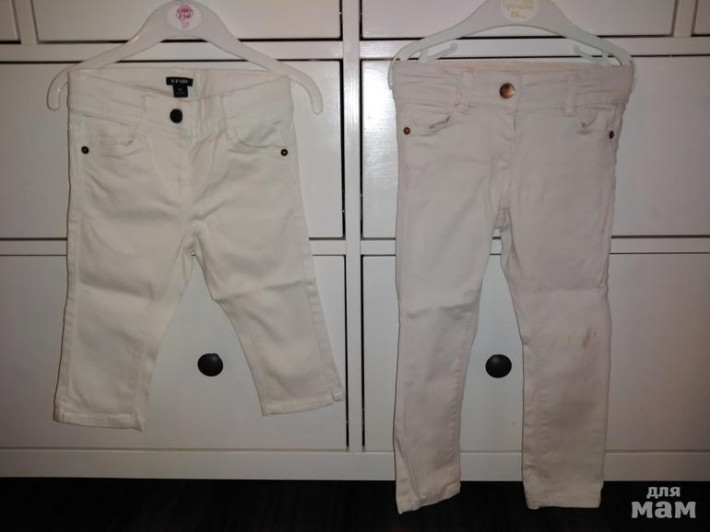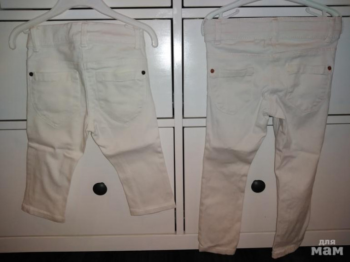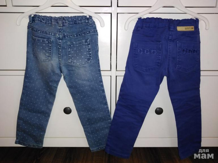 8) Джинсы KIABI 3T на 92/98 в зависимости от полноты, слева укороченные типа бриджи, справа длинные (с нюансом, пятно) 150 и 50р.