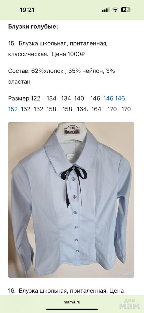 15. Блузка школьная, приталенная, классическая. Цена 1000₽