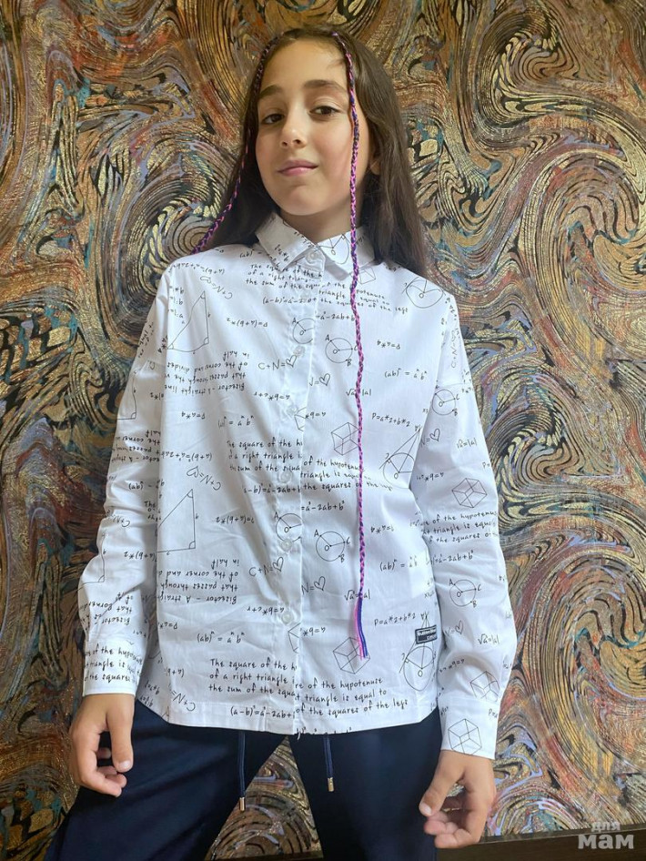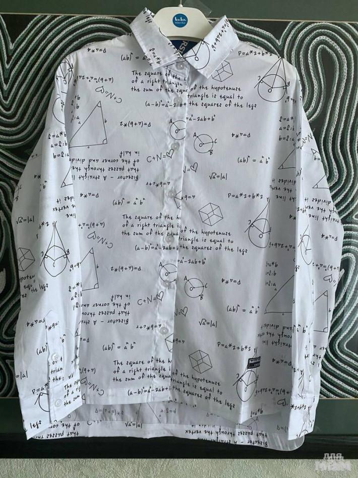 2. Блузка школьная, принт формулы, оверсайз. Цена 1600₽