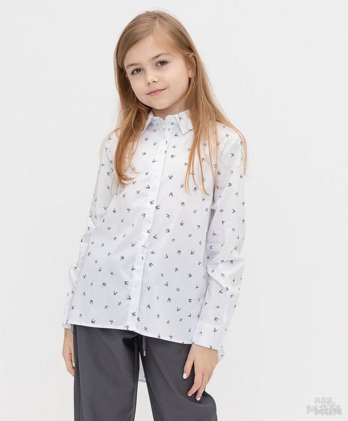 4. Блузка школьная, принт ласточки, удлиненная спинка. Цена 1000₽
