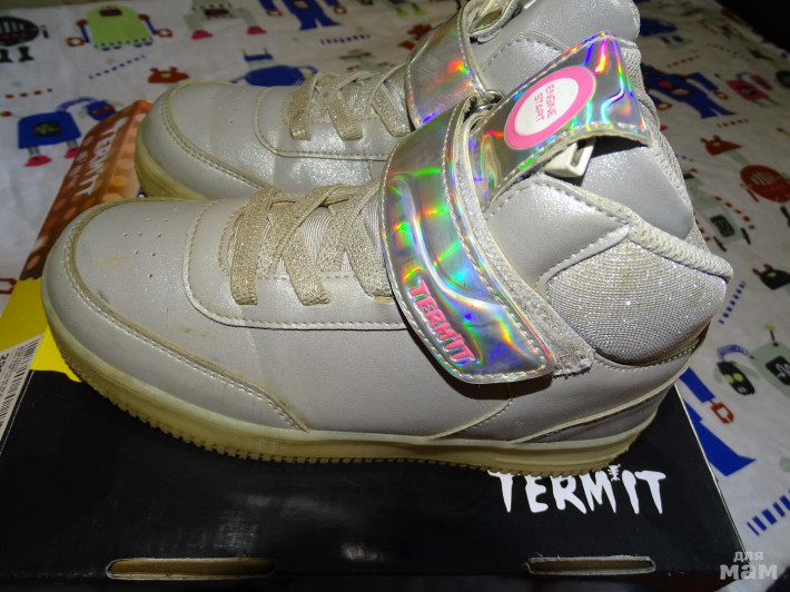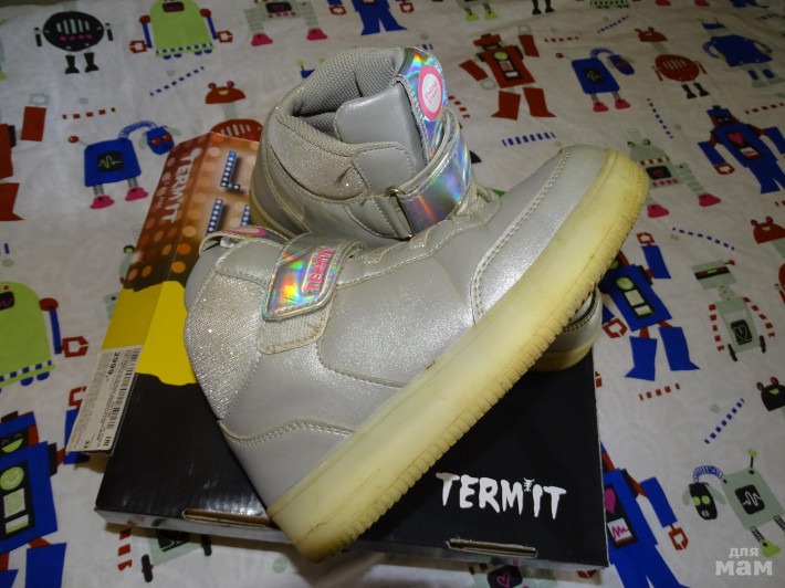 18) Демисезонные ботинки Termit светящаяся подошва размер 32, обувь к фото не готовила (пыльноваты) но они по состоянию в идеале, носили считанные разы. Все работает и зарядка в наличии 1500р.