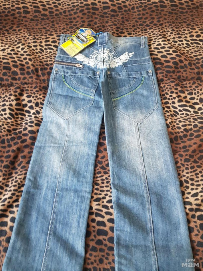 Джинсы крутые, с орлом на попе, новые с ярлыком, 152. Цена 1200 руб.