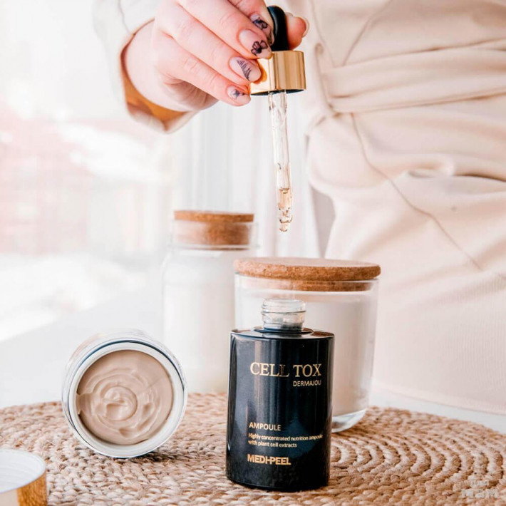 Омолаживающая ампульная сыворотка со стволовыми клетками Medi-Peel Cell Toxing Dermajou Ampoule для эффективной борьбы со старением кожи и потерей упругости. Сыворотка работает с уже имеющимися морщинами и предотвращает появление новых, продлевая молодость кожи. Продукт восстанавливает тургор, повышает упругость и эластичность тканей, укрепляет и подтягивает овал лица. Оказывает лёгкое действие лифтинга, разглаживает и сокращает глубину морщин и кожных заломов.