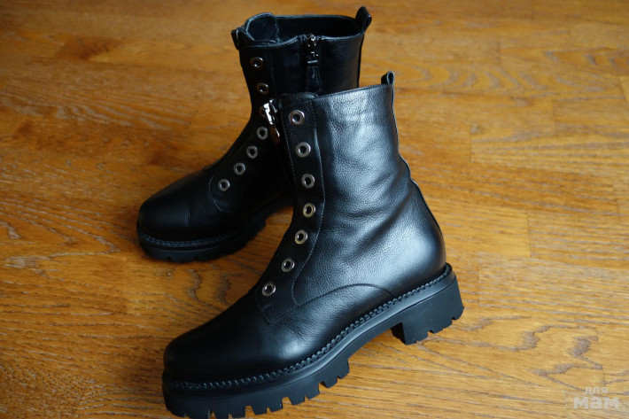 натуральная зернистая кожа, мягчайшая, цвет чёрный, полностью на натуральном меху, очень удобная колодка, застёжка молния сбоку, спереди как декор, в идеальном! состоянии