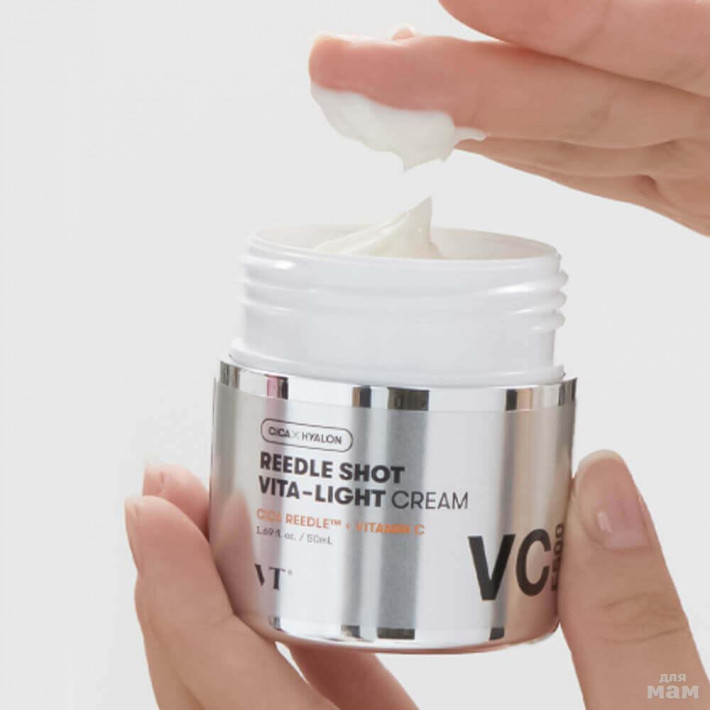 Крем VT Cosmetics Reedle Shot Vita-light Cream уменьшает выраженность пигментации и постакне, тонизирует, придаёт лицу здоровое сияние и ровный тон.