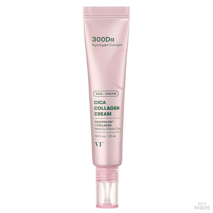 Увлажняющий крем VT Cosmetics Cica Collagen Cream повышает упругость и эластичность кожи, подходит для профилактики первых возрастных изменений.