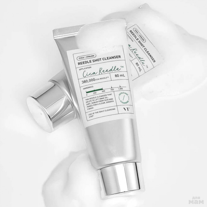 Пенка для глубокого очищения с микроиглами VT Cosmetics Reedle Shot Cleanser удаляет загрязнения, абсорбирует излишки себума и деликатно отшелушивает. Растворяет комедоны, осветляет сальные нити и чёрные точки, способствует сужению пор. Смягчает огрубевшую кожу и разглаживает микрорельеф.
