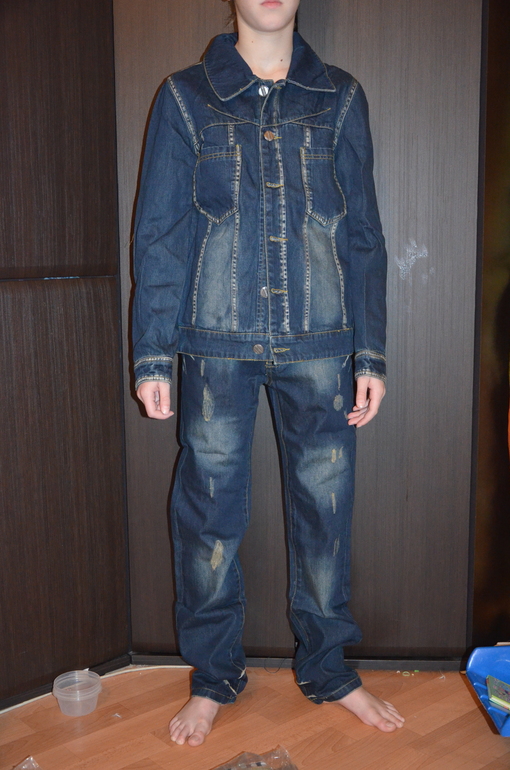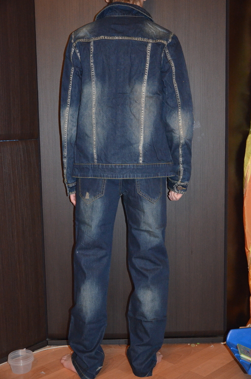15.костюм джинсовый р. 158 (сын на фото 150) цена 2000