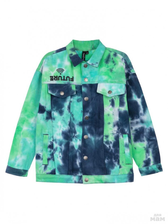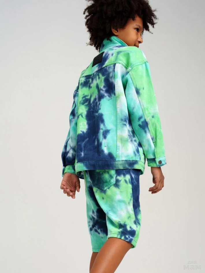 Яркая джинсовая куртка тай дай из эластичного денима. Свободная посадка. Средняя длина. Застежка на кнопки.