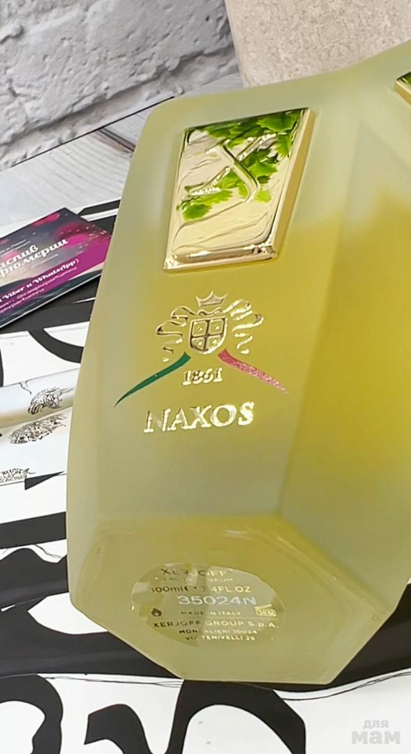 Композиция Naxos открывается классическими, воздушными и фруктовыми нотами цитрусов, окруженными мягким и успокаивающим аккордом лаванды. В сердце соединились жасмин самбак, корица, кашмеран и мед, чье романтичное благоухание обогащают мужественные тона табака и бобов тонка, звучащие из базы. Ваниль создает мягкую и чувственную завесу, соприкасаясь с цветами, фруктами и листьями табака.