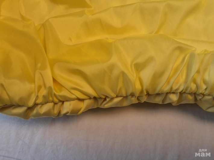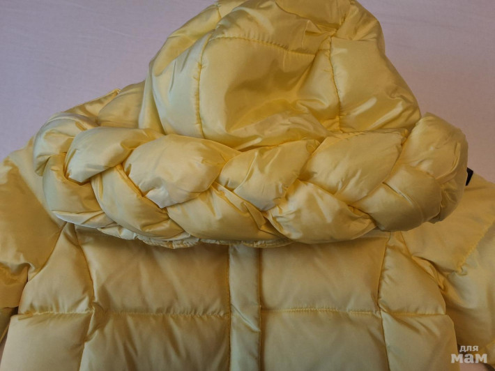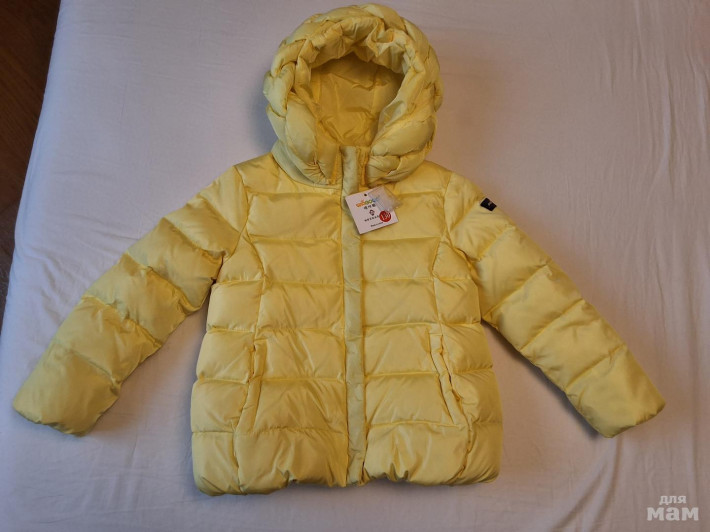 Шикарная пуховая куртка. Размер 6-7 лет, производство Китай. Наполнитель пух, набита плотно. Наполнитель пух, на молнии. На руковах у запястья и по низу куртки вшита резинка, предотвращающая задув ветра. 2 кармана, капюшон украшен косой, очень эфектно. Смотрится супер. Цвет ярко желтый. Новая с этикеткой.
